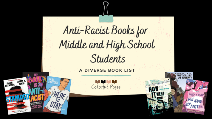 With the calling for anti-racism in education, Colorful Pages and I have gotten countless (and I am talking countless) requests for an Anti-Racist Book List! It has taken me a long time to get this list together because, when talking about race, racism, and anti-racism, it has to be done right. I am splitting up this Anti-Racist Book List into two posts: one for elementary students and one for middle school and high school students. Every book on this list is written by an author of color because I feel we, as Black Indigenous, People of Color, need to be the ones to tell these stories since we are the ones that have experienced the racism discussed within them. I have listed 18 books for middle school and high school students: 5 diverse books about race and identity; 8 books about racism, prejudice, and anti-racism in a modern context; and 5 books about racism, prejudice, and anti-racism in a historical context.