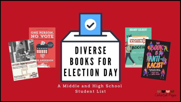 To do this, check out our Colorful Pages Election Day Book List for Middle and High School Students! We have listed 8 diverse books that are perfect to read on, before, or after Election Day to teach about voting and our country’s voting rights history. You can also check out our Election Day Book List for Elementary Students for more title suggestions for your younger kiddos. Happy Election Day and remember to cast your vote by Tuesday, November 3rd!